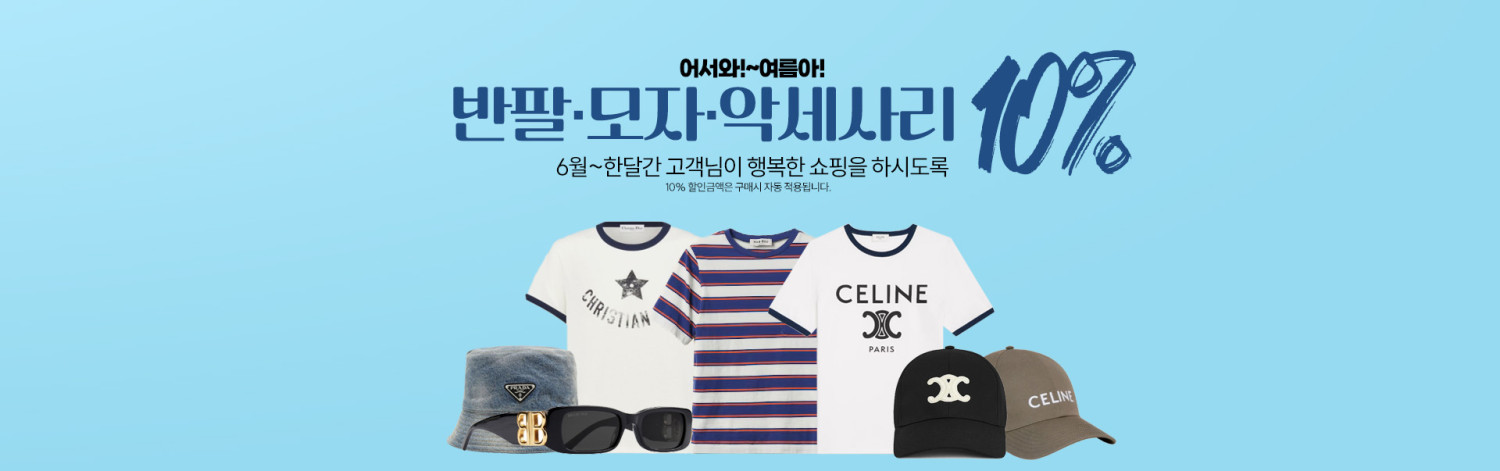 ㆍ 반팔 티셔츠, 모자, 악세사리 전 제품 10% 할인!