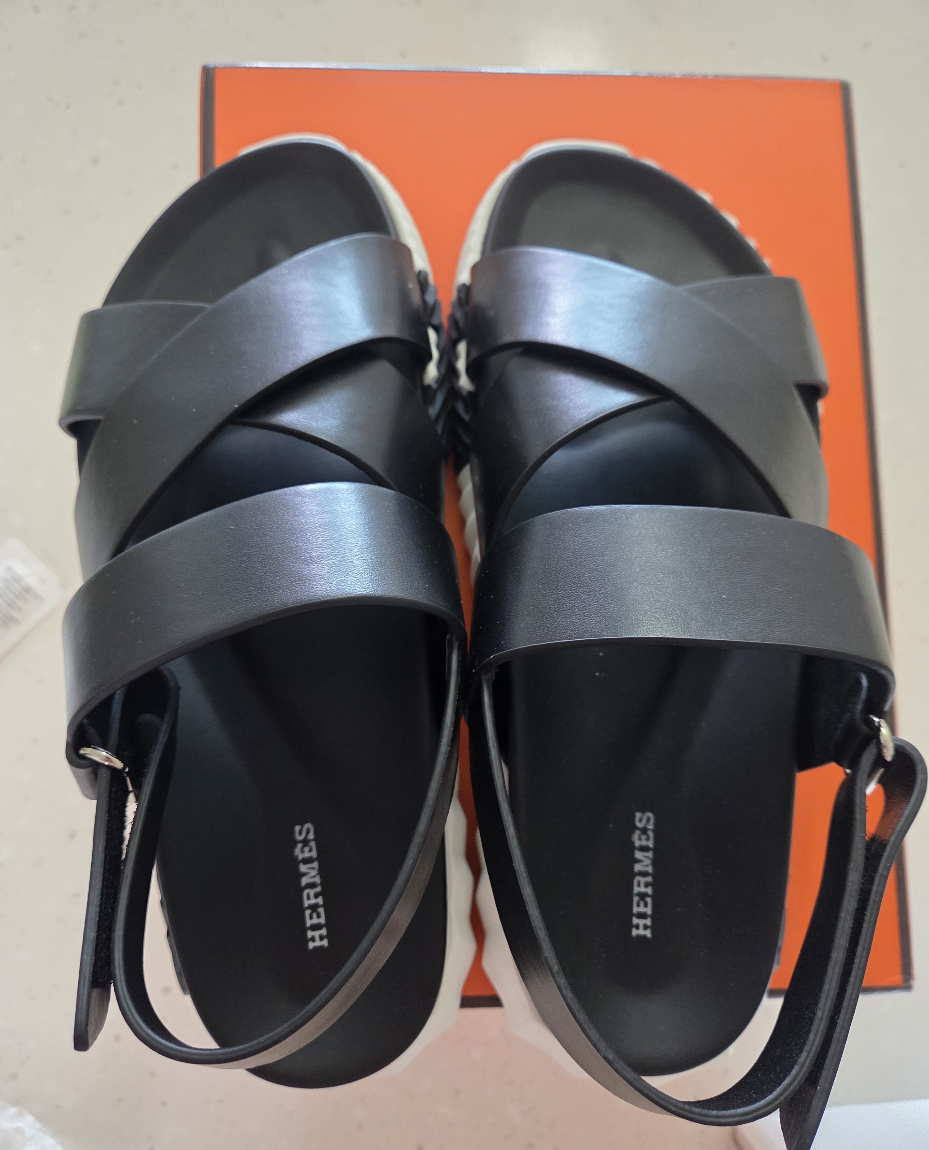 에르메스 엑스트라 시프레 나파 앤 느와르 샌들