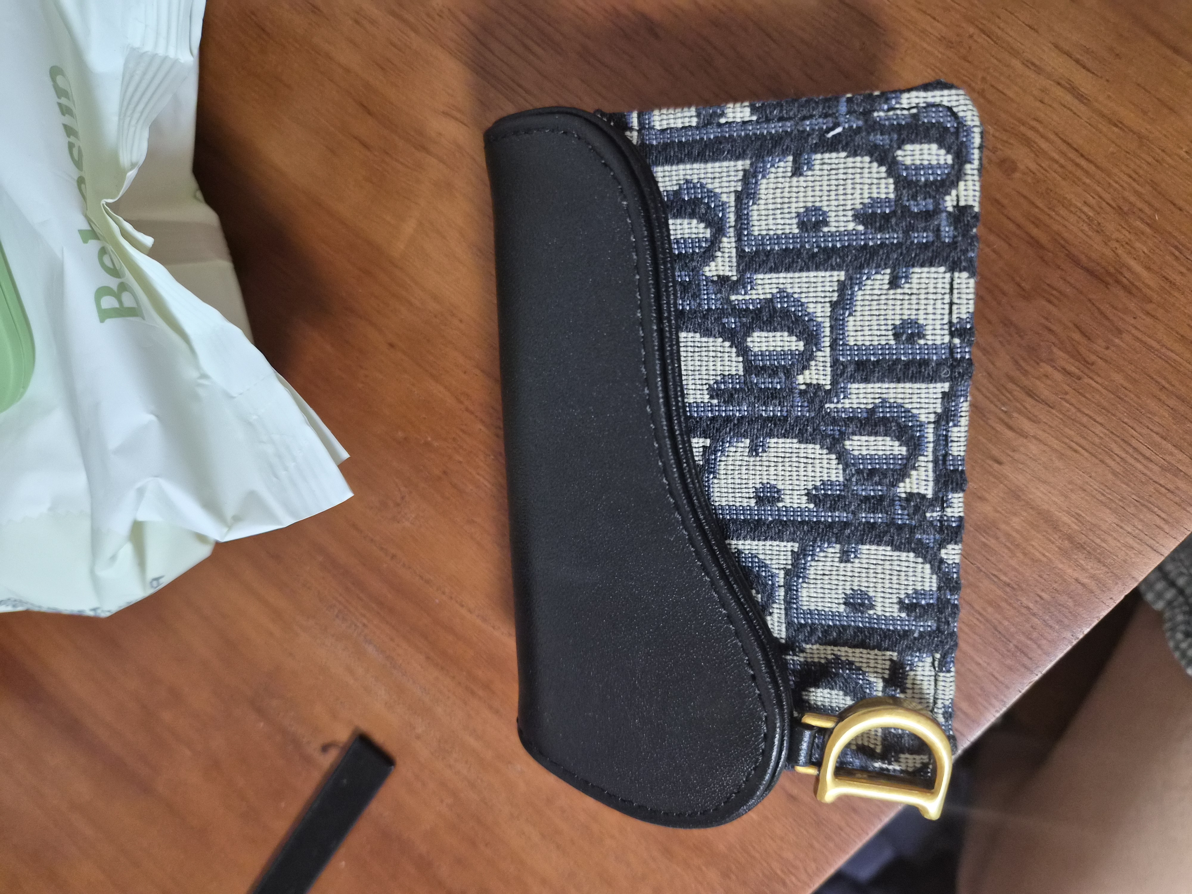 디올 새들 카드 지갑 베이지