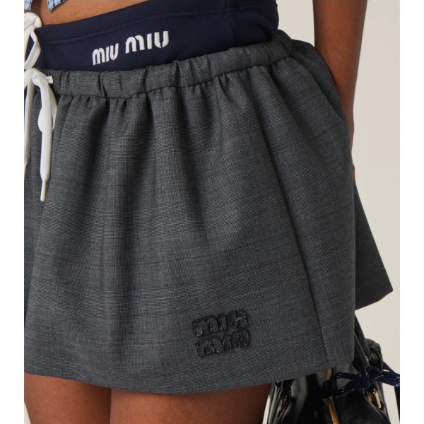 미우미우 체크 자수로고 미니스커트
