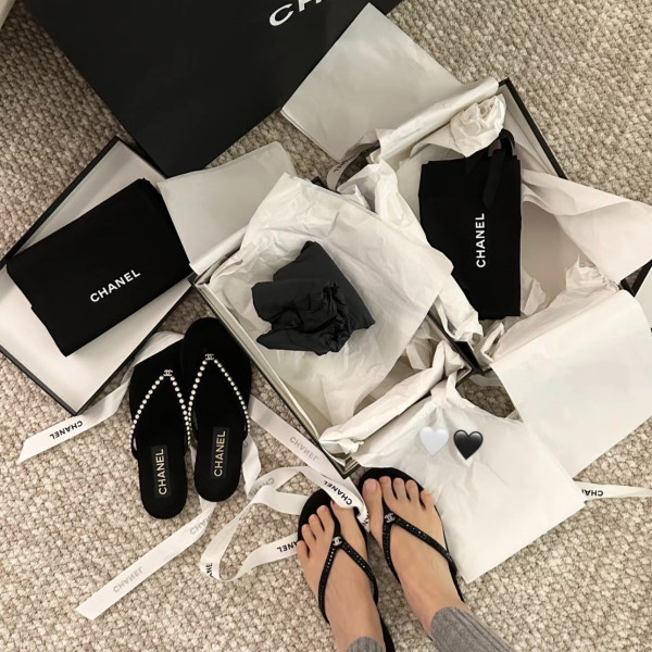 샤* 25C 봄여름 신상 진주 벨벳 조리 > CHANEL