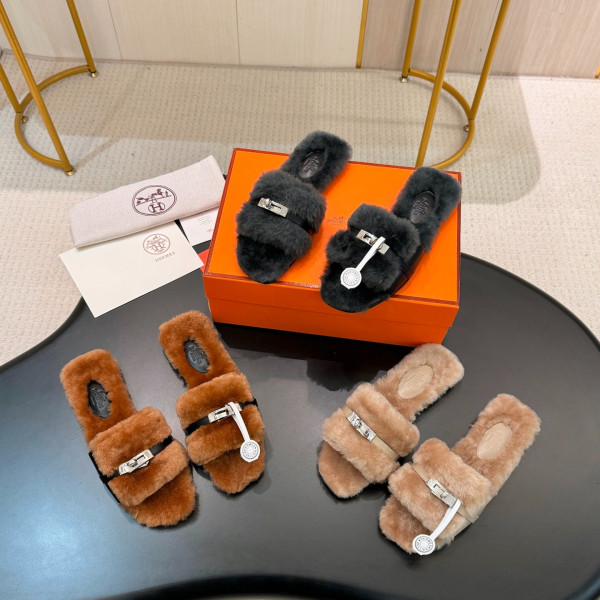 에*메스 25 가을 겨울 신상 켈리 털 슬리퍼 > HERMES