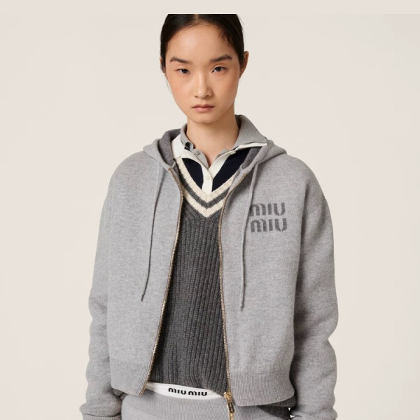 미우미우 더블 캐시미어 지퍼 후디 가디건