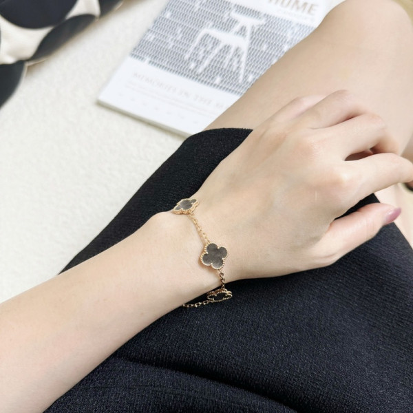 반*리프 Arpel* VVIP 리미티드 5모티브 빈티지 알함브라 실버 옵시디언 팔찌 브레이슬릿 > 팔찌