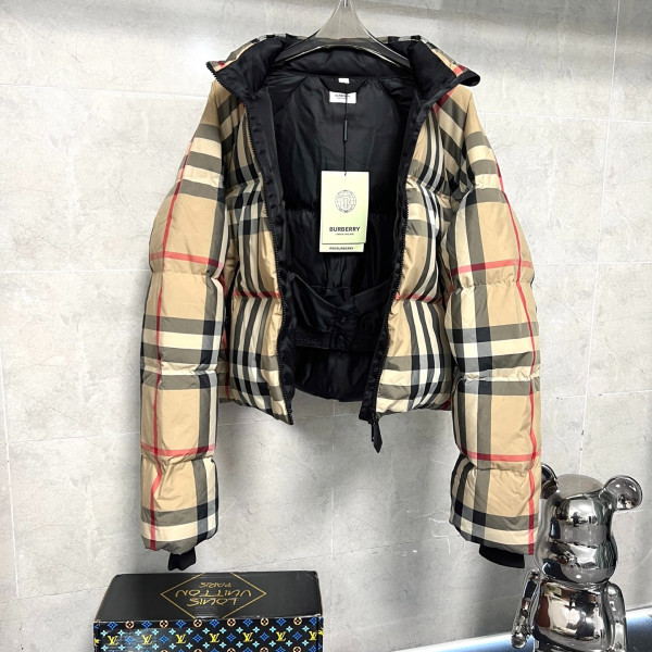 버*리 체크 여성 숏패딩