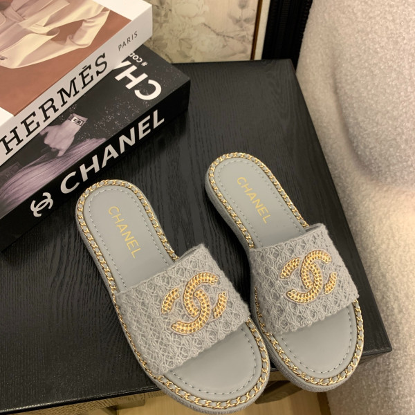 샤* 25 신상 플랫 더블 c 체인 슬리퍼