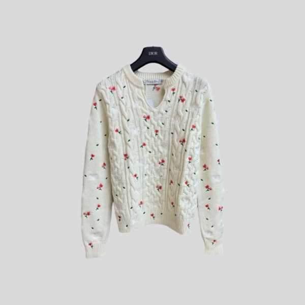 디올 플로럴 자수 스웨터