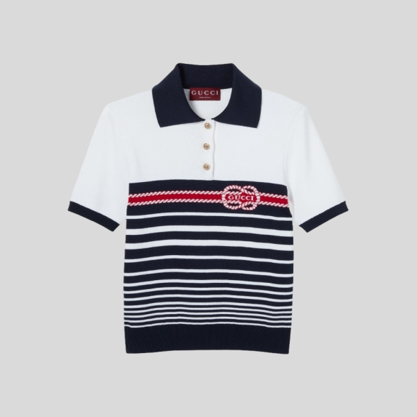 구찌 인타르시아 코튼 스티치 폴로 탑