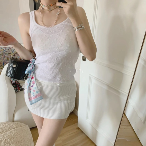 샤넬 패턴 조끼 화이트