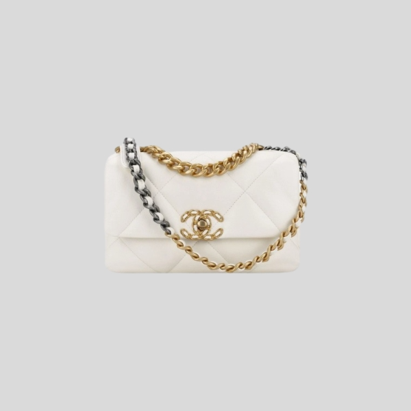 샤넬 19 미디움 핸드백 램스킨 & 골드 메탈 화이트