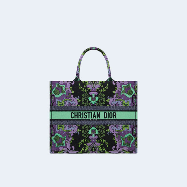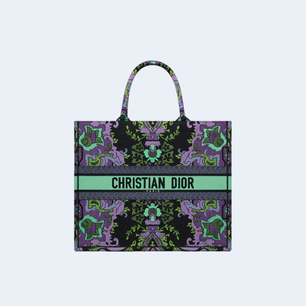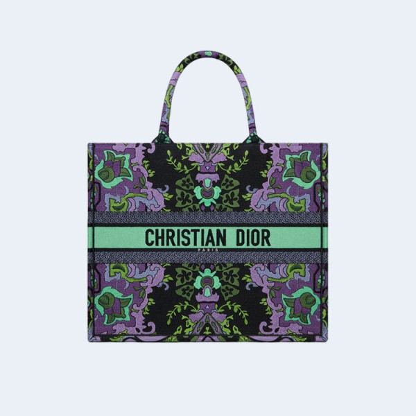 디올 인디언 퍼플 자수 북 토트 미디움 백