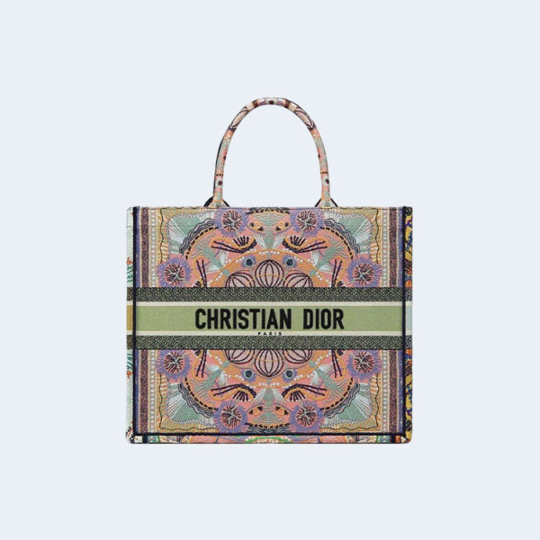 디올 캔버스 멀티 컬러 북 토트 라지백