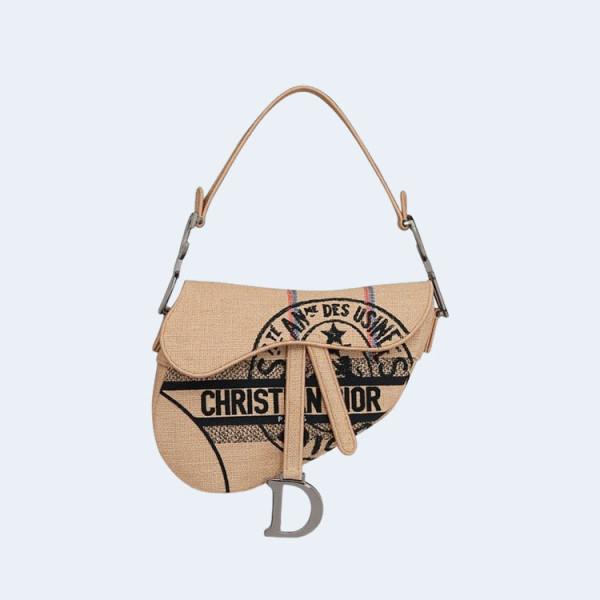 디올 유니온 자수 새들 백 베이지