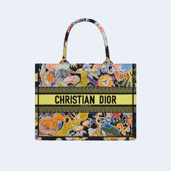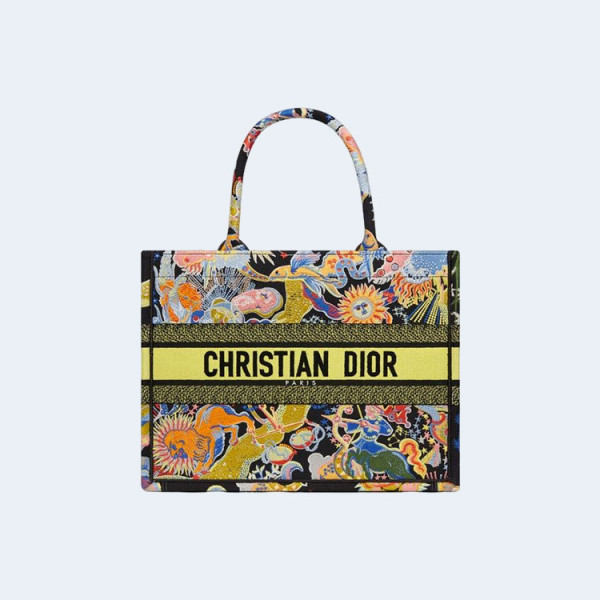 디올 블랙 멀티 컬러 북 토트 미디움 백