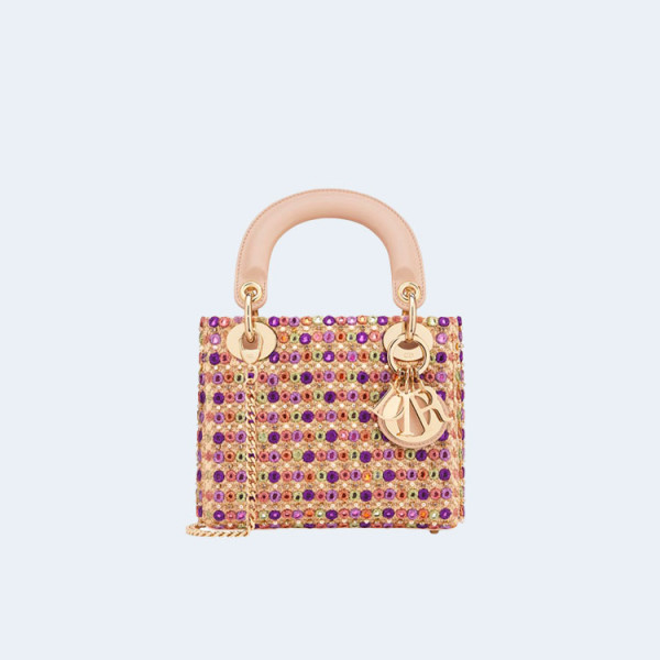 디올 라이트 레이디 백 새틴 미러 비즈 멀티컬러