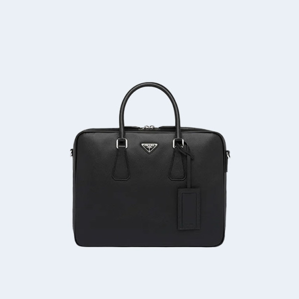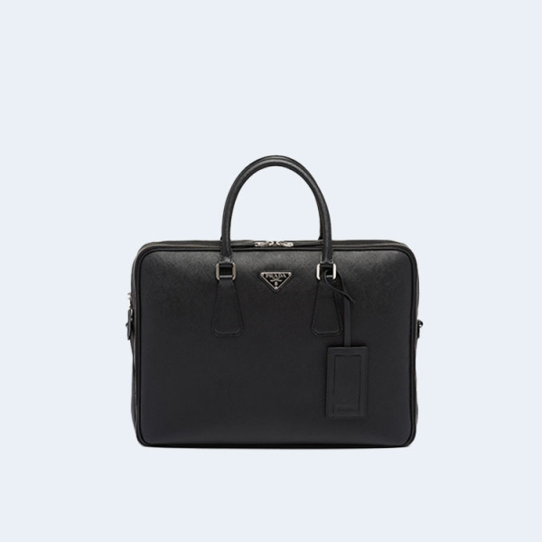 프라다 사피아노 삼각로고 레더 투지퍼 브리프케이스