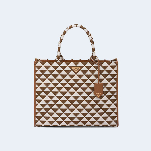 프라다 브리크 자수 패브릭백 베이지