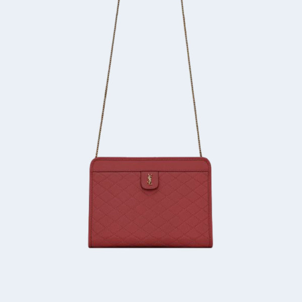 생로랑 퀄티드 빅투아르 체인 숄더백 레드 골드