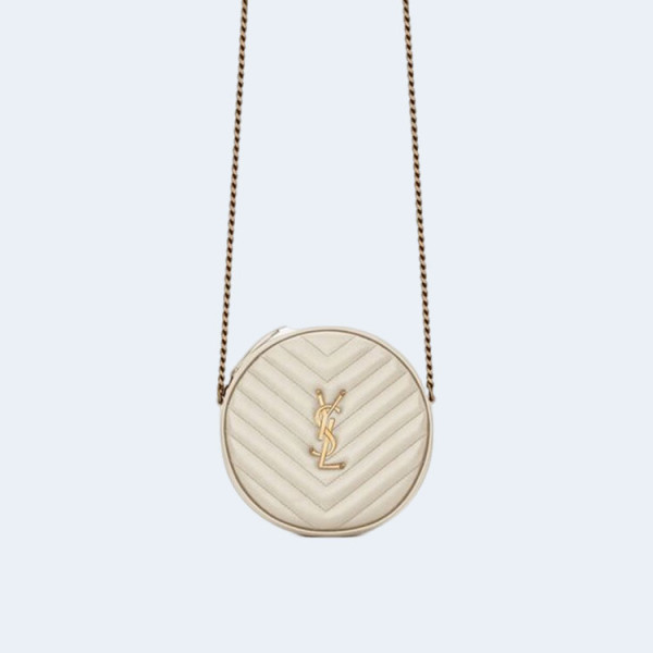 생로랑 쉐브론 라운드 카메라 백 베이지