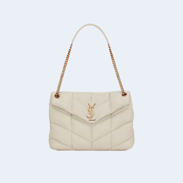 생로랑 PUFFER 레더 라지 숄더백 화이트 골드
