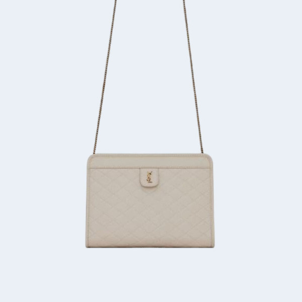 생로랑 퀄티드 GABY 지퍼 파우치 화이트