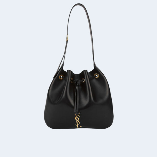생로랑 모노그램 PUFFER 샤이니 레더 숄더백 블랙 골드