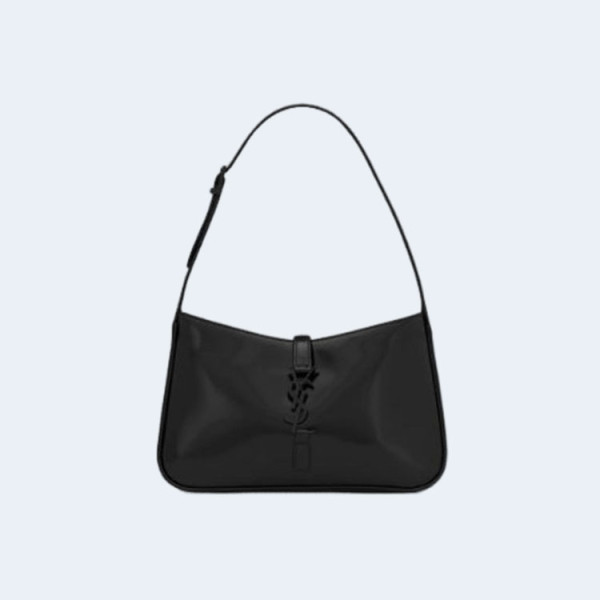 생로랑 LE 5 A 7 페이턴트 레더 숄더 백 다크