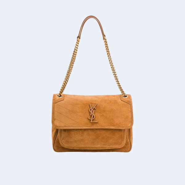 생로랑 니키 스웨이드 미디움 체인백 브라운