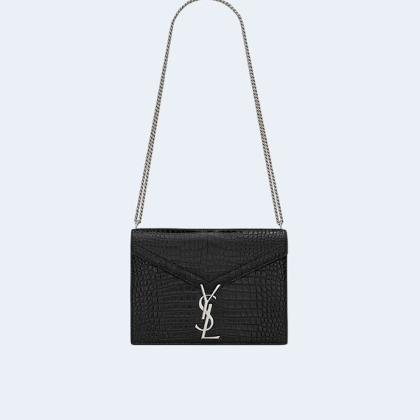 생로랑 크로커다일 카산드라 클래스프 백 블랙 실버