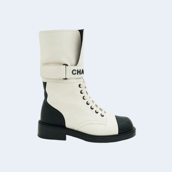 샤넬 레이스업 램스킨 카프스킨 부츠 화이트