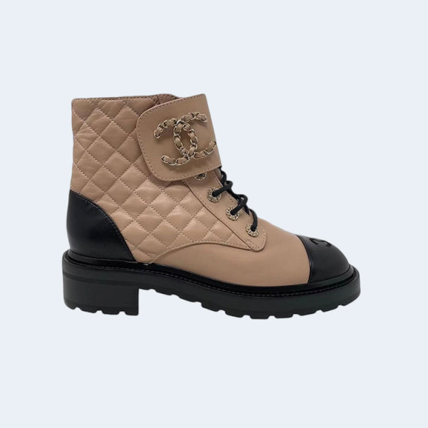 샤넬 레이스업 퀼팅 컴뱃 부츠 베이지