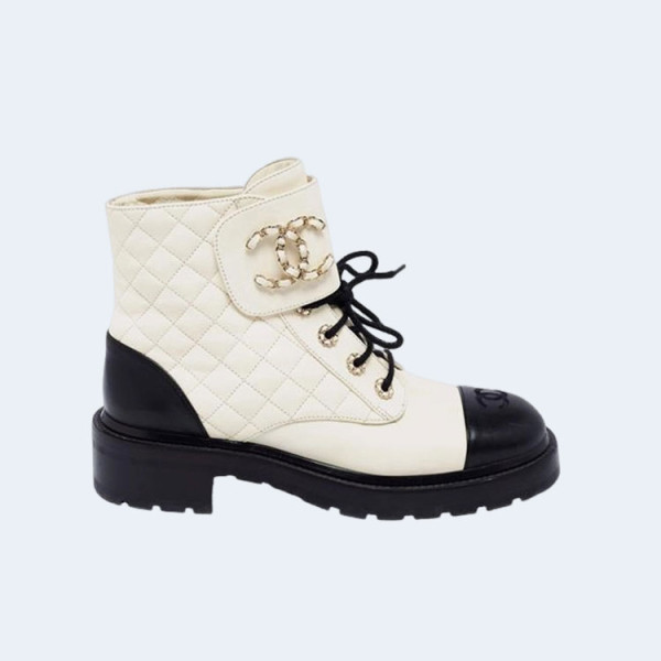 샤넬 레이스업 퀼팅 컴뱃 부츠 화이트