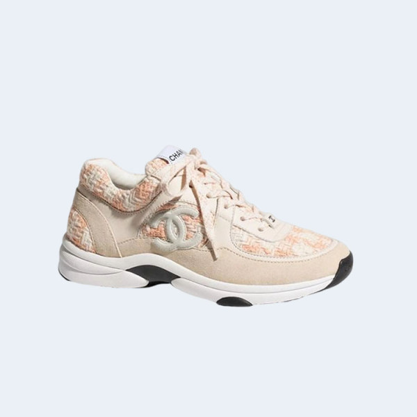 샤넬 CC 로고 트위드 스니커즈 핑크