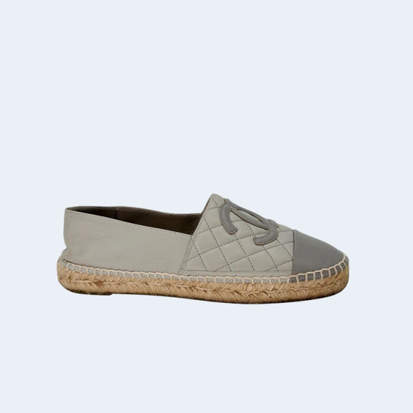 샤넬 Espadrille 자수 가죽 캡 토 플랫 그레이