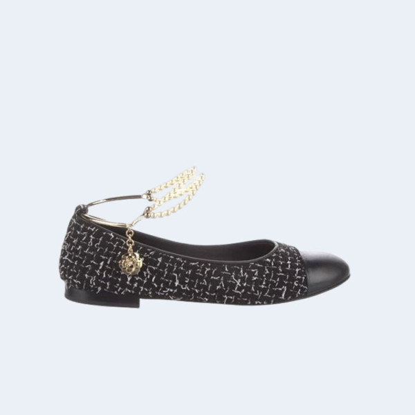 샤넬 Espadrille 자수 가죽 캡 토 플랫 블랙