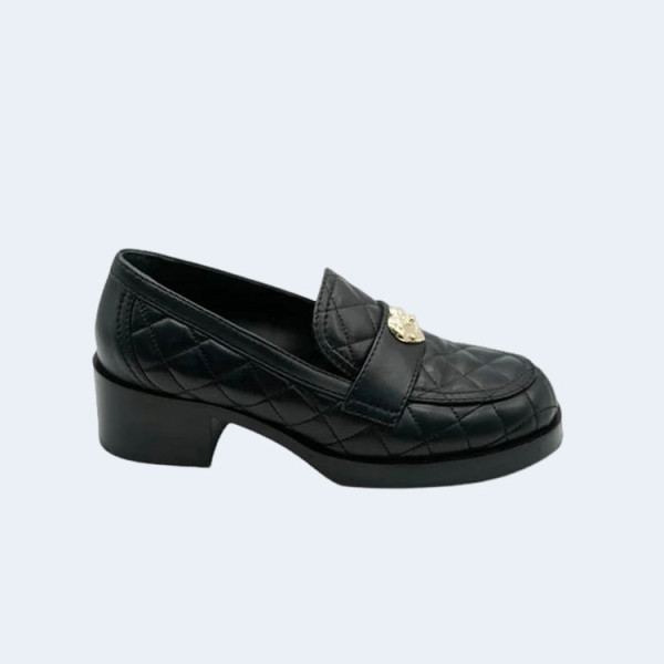 샤넬 CC 퀼티드 골드 하트 로퍼 블랙