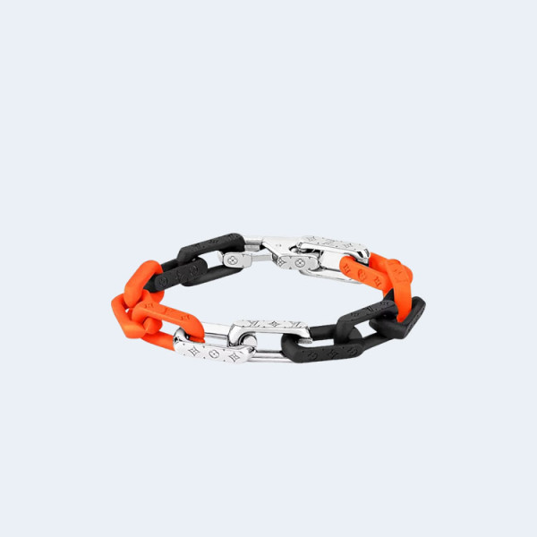 루이비통 모노그램 체인 브레이슬릿 실버 오렌지 블랙
