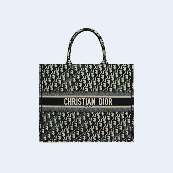 디올 오블리크 자수 라지 북 토트백 블루