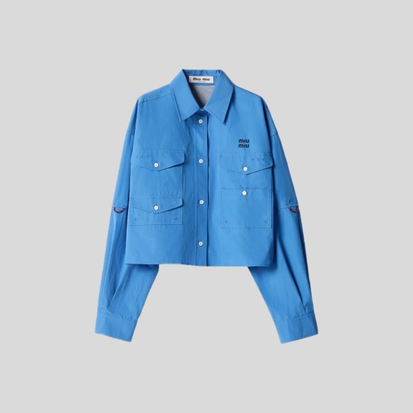 미우미우 테크니컬 포플린 블루종 자켓