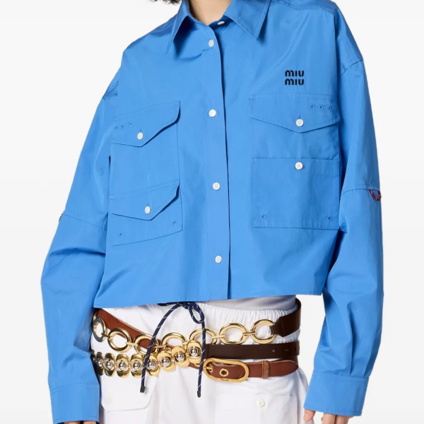 미우미우 로고 자수 프런트 포켓 셔츠