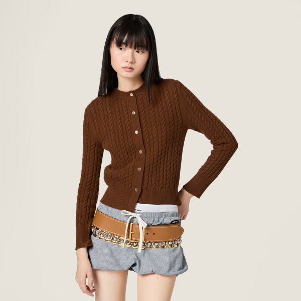 미우미우 케이블 니트 캐시미어 가디건